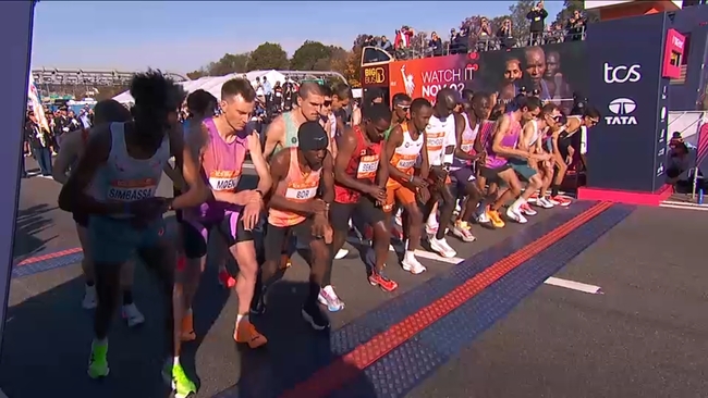 The professional men started their marathon just after 9:00 a.m.