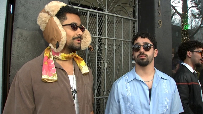Adam Fox, 24, and his friend Alejandro Kurt, 23, traveled from Belmont, a city about 25 miles (40 kilometers) south of San Francisco, after both men with curly dark hair and dark facial hair were told they look like Bad Bunny.