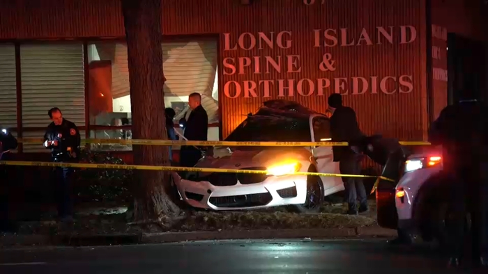 Police said a 23-year-old man driving a 2026 white BMW lost control near Sterling Place in Hicksville last Friday.