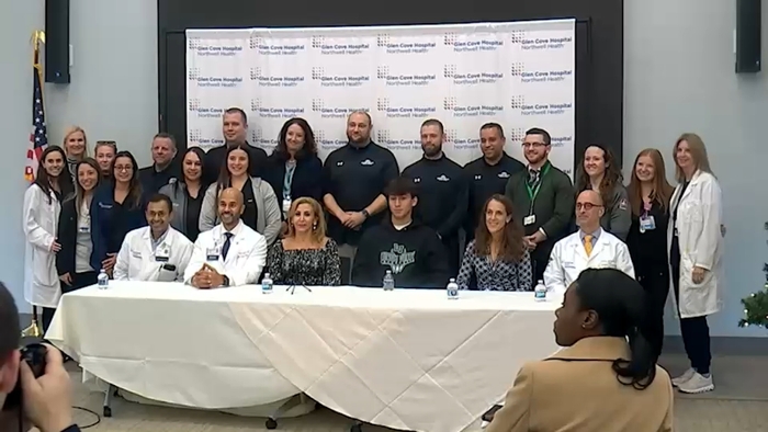 There was an emotional reunion on Wednesday for a teenager who went into cardiac arrest during a high school basketball tryout on Long Island last week.