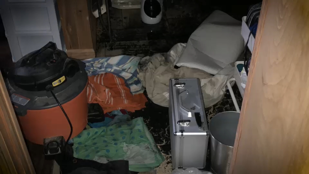 Knots of electrical wires were draped inside the skeleton of the house. Months after the storm, light filtered through breaks in the tarps over the windows. "All I could think of was, 'This isn't my house,'" said Natalie, who had been staying in her grandparents' basement.