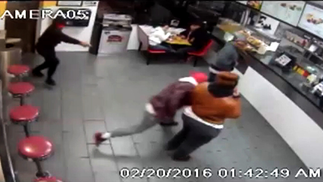 Authorities also released surveillance videos from some of the incidents, including one in February 2016 in which a rival gang member grabbed a 33-year-old woman at a restaurant to shield himself from gunfire. The woman sustained three gunshot wounds to the left leg, while the alleged gang member suffered 5 gunshot wounds. Both survived.