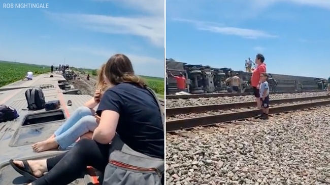 Passenger Rob Nightingale, 58, told ABC News his train car tipped to the side and he climbed through a window to escape. He said he saw a little girl crying and her family trying to comfort her.