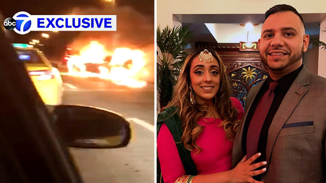 In exclusive video obtained by Eyewitness News, you can see a man hailing a cab in the middle of the expressway while Grewal burned to death.