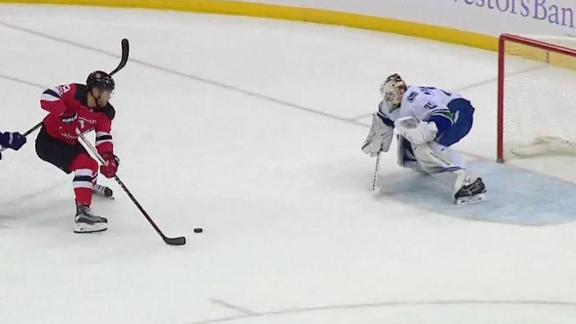 The Devils had a 10-9 shot advantage in the opening period that lacked quality scoring chances for both sides. Each team had a good opportunity late in the period. Jacob Markstrom denied Blake Coleman's drive from the right wing to keep the Devils off the scoreboard, then Schneider squeezed the pads tightly to stop Christopher Tanev's wrister from the slot.