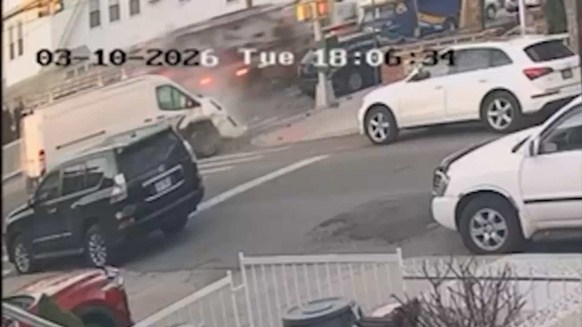 A camera on a nearby home captured that van heading into the intersection, and then the firetruck T-boning it.