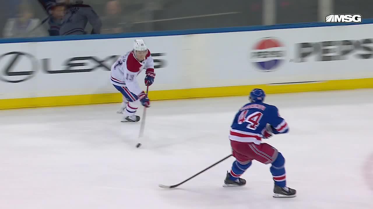 Alex Newhook scored the Canadiens' first goal 4 1/2 minutes into the second period on their 12th shot against Igor Shesterkin, who was the only reason they hadn't taken a lead earlier.