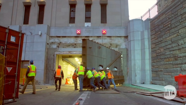 Video from the MTA shows the flood gates being tested: