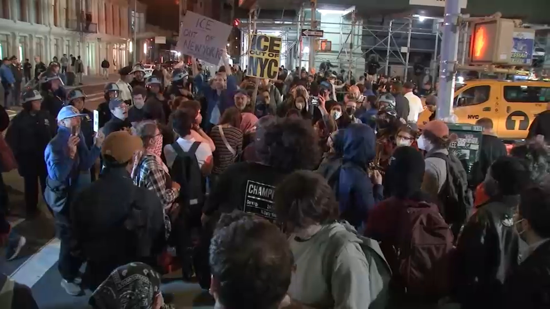 NewsCopter 7 showed arrests taking place between Lafayette and Center streets in Chinatown, an area typically busy with merchants selling T-shirts, handbags, perfumes, and designer knockoffs, as New Yorkers faced off against federal agents.