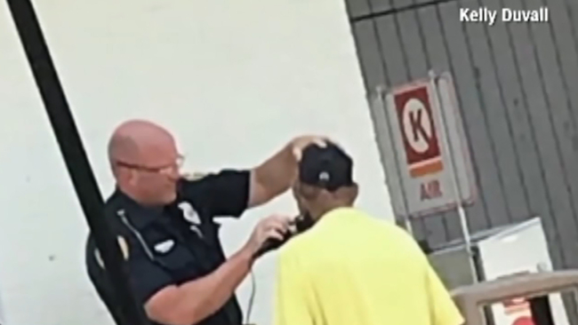 That police officer was caught on camera helping shave the beard of a homeless man named Phil who wanted to clean up for a job interview at a local McDonald's in Tallahassee, Florida.