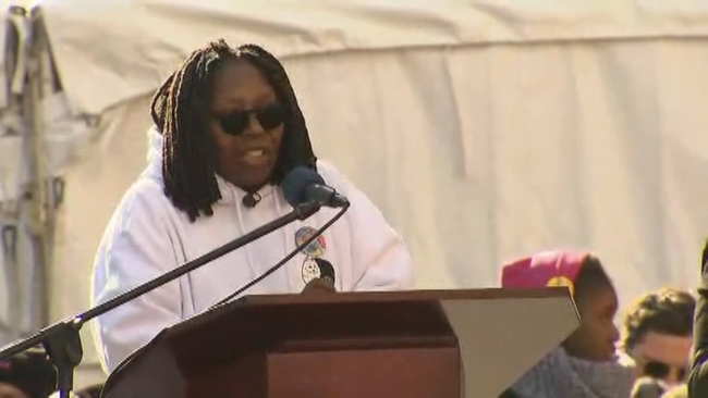 UPPER WEST SIDE, Manhattan (WABC) -- Hundreds of thousands of people took to the streets of New York City Saturday in a rally and march for women's rights on the one-year anniversary of President Donald Trump's inauguration.