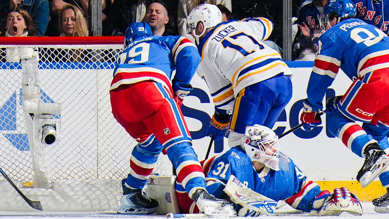 Zucker slid his 24th goal past Rangers goaltender Igor Shesterkin at 7:14 after teammate Alex Tuch had tied the contest with his 31st at 5:50 of the third.