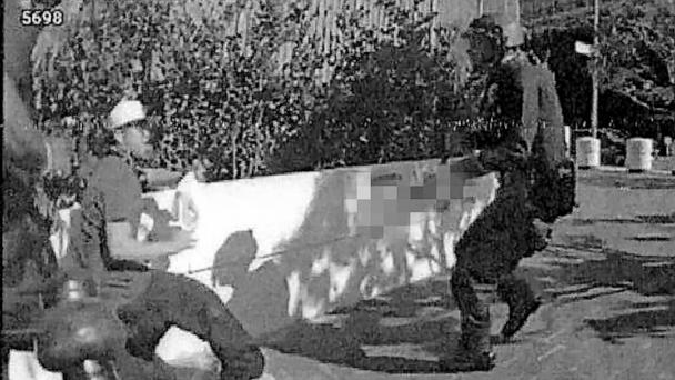 When the LAPD approached Quiogue -- who officials said was armed with a Molotov cocktail at Sunday's protest in downtown LA -- he allegedly "threw the Molotov cocktail into the air and attempted to flee," the complaint said. The confrontation was caught on officer body camera.