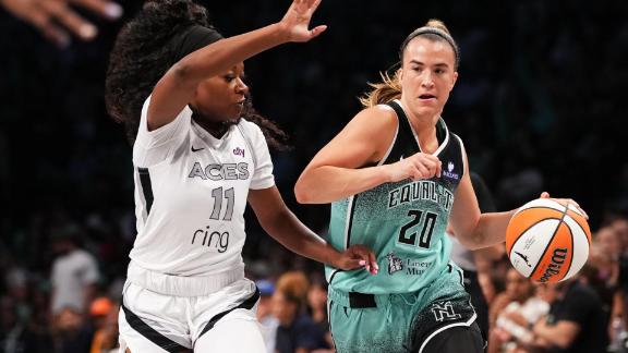 The Liberty held on to a thin lead for much of the first half, led by Ionescu's 10 points and recently-returned Leonie Fiebich with eight points in the half. Their lead grew to nine at its widest point, but the Aces (9-10) stayed close and a last minute layup from Jackie Young gave them a 42-40 lead heading into halftime.