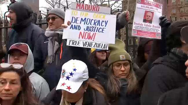 Venezuelan nationals in support of Maduro's capture also rallied on Monday.