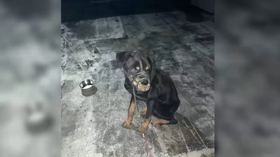 The dog was found injured, malnourished, chained and muzzled without food or water at 1289 Atlantic Avenue on Saturday afternoon.