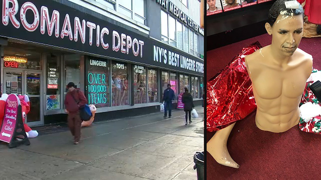 HARLEM, Manhattan (WABC) -- A man is under arrest after police say he smashed the front window of a Manhattan lingerie store and destroyed a mannequin resembling former President Barack Obama dressed as Santa Claus.