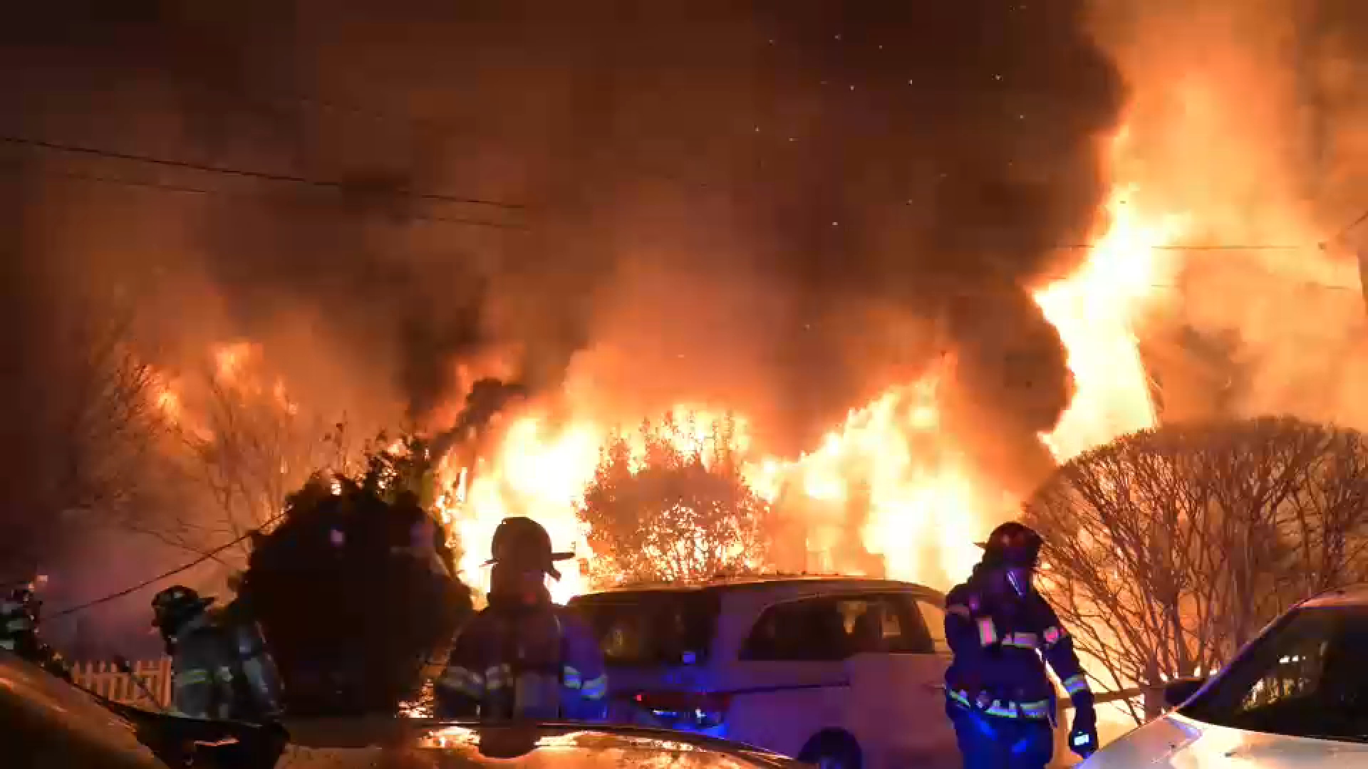 The fire initially broke out at a home off Chapman Avenue in Bellmore, New York, around 4:30 a.m.