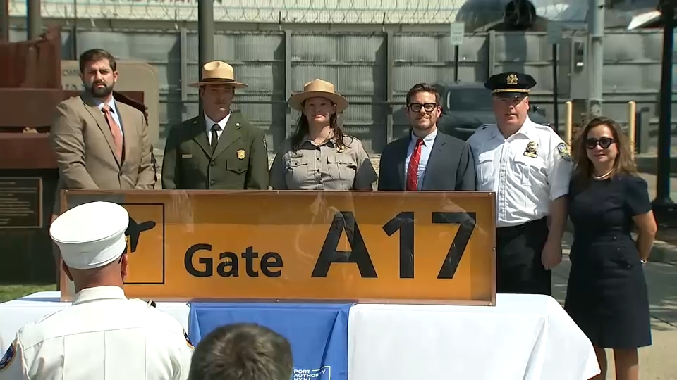 NEWARK, New Jersey (WABC) -- There was a moment of sadness and reflection on Friday morning at Newark Liberty International Airport where the Port Authority transferred a sign with indelible ties to 9/11 to the National Park Service.