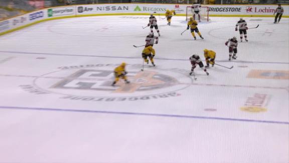 Nashville regained the lead at 7:01 of the second when he took a pass from Josi going across the blue line and went in on a partial breakaway. From the low slot, Novak snapped a wrist shot high to Daws' glove side.