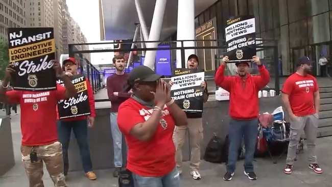 Striking locomotive engineers are outside the station on Friday, calling for change, while commuters are dealing with the first day of no NJ Transit train service.