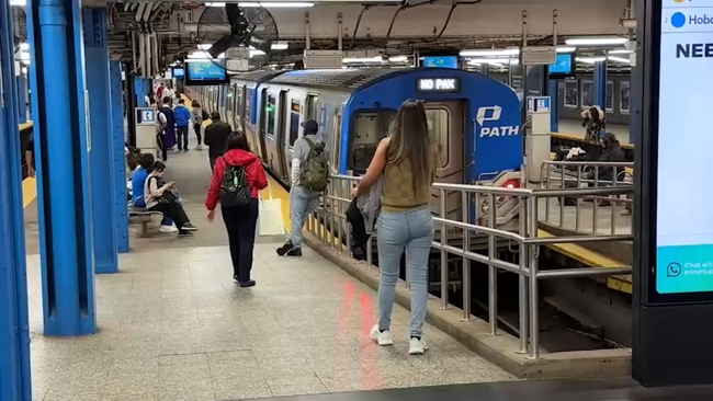 There are signs up at stations and caution tape on the doors leading to some tracks to block access. Only the doors leading to the PATH and Amtrak trains are open.