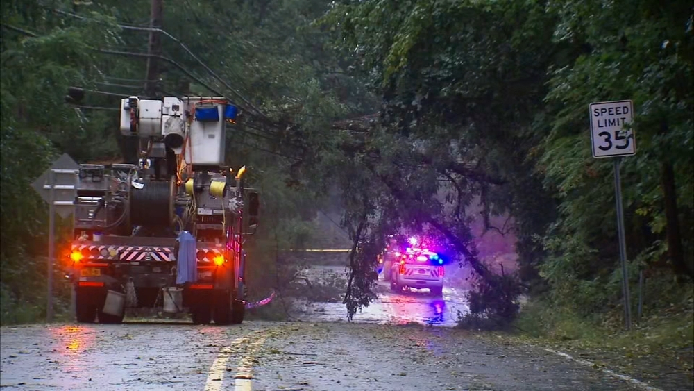Trees and power lines were toppled in a number of places, including Chappaqua, where a tree came crashing down onto a house. No one was injured.