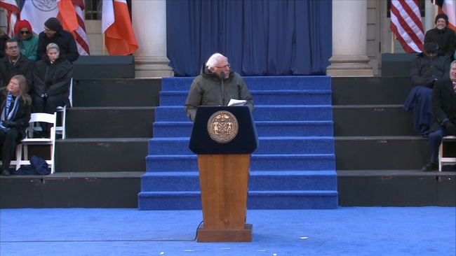 Vermont Senator Bernie Sanders, a Brooklyn native, officiated the swearing-in.