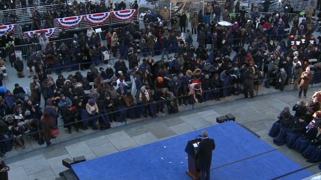 The ceremony was much smaller and much colder than his 2014 inauguration. De Blasio opened by asking the audience, bundled up with temperatures in the teens, if they wanted him to deliver a short speech. They did, and he promised to deliver.