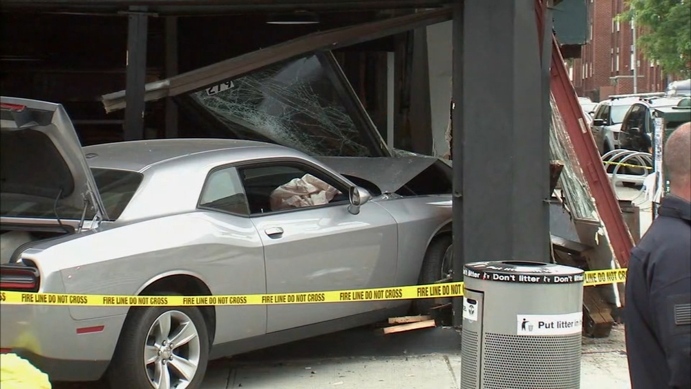 BEDFORD-STUYVESANT, Brooklyn (WABC) -- An off-duty NYPD cadet is under arrest, accused of leaving the scene of a chain reaction crash that sent a car into a Brooklyn coffee shop.