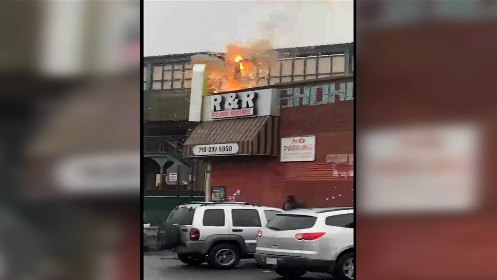 Flames could be seen shooting from the street.