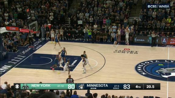 The Lynx led 38-27 with two minutes left in the first half, but New York answered with a 16-0 run to close the second quarter and open the third. Jones capped the spurt with a three-point play about 1 1/2 minutes into the second half.