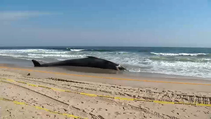 Large whale washes ashore onto Rockaway Beach