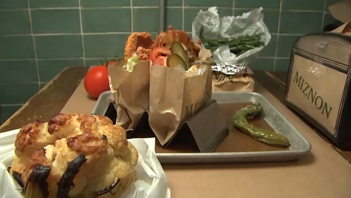 Miznon is the first U.S. location of this international chain which is known for turning street food into an art form.