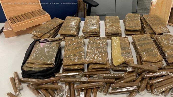 Investigators say they discovered around 20 pounds of cocaine concealed in the false bottoms of cigar boxes at a residence in Cypress Hills, Brooklyn.