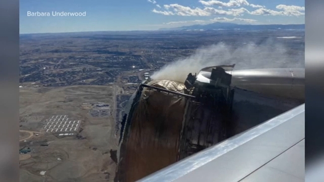 The Broomfield Police Department posted photos on Twitter showing large, circular pieces of debris that appeared to be the engine cowling leaning against a house in the suburb about 16 miles (40 kilometers) northwest of Denver. Police asked anyone injured on the ground to come forward.